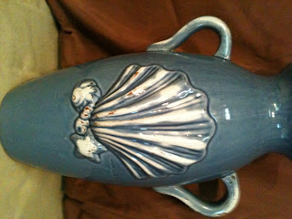 $25.00 Tall blue shell vase with handles 24 in. tall